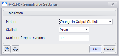 Nearly all of the ranking methods are a simple selection through the Settings/Actions menu. However, the 'Change in Output Statistics' option has additional configurations available. These configurations can be accessed through the 'Sensitivity Settings' command. Selecting this option will open the Sensitivity Settings window (Figure 3, right).