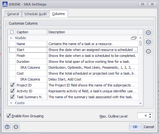 | DTS-5090 | As a user I want to be able to add Activity ID and Project ID fields to my SRA Model Columns | SRA |