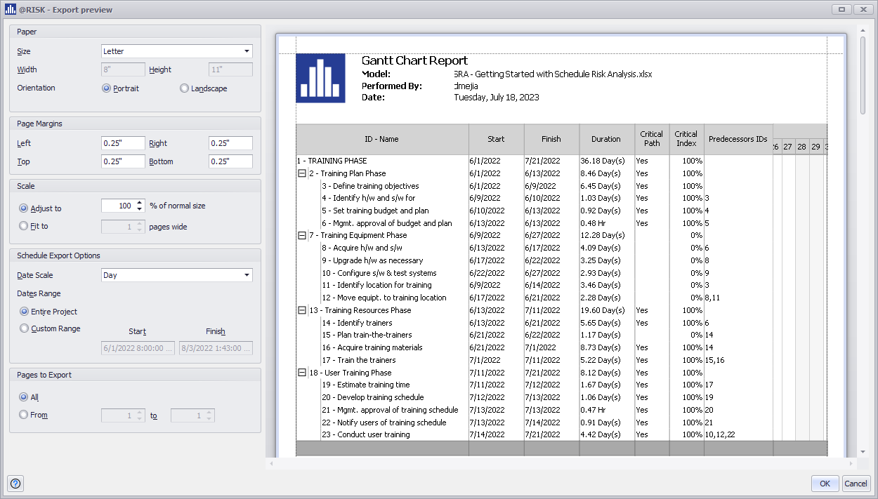 | DTS-264 | Compact Output report to Excel does not fit on one page | @RISK |