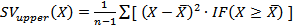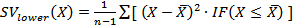 RiskSemiVariance (cellref or output/input name, lower_data, Sim#) returns the lower or upper semivariance of the simulated distribution for cellref. The lower semivariance is similar to the variance, but for all data points >= the mean zeroes are accumulated instead of the squared deviations. In the upper semivariance, zeroes are accumulated instead of squared deviations <= the mean. The sum of the two semivariances equals the variance. |